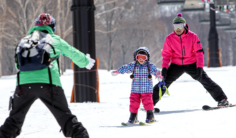 総コース面積297haの広大なゲレンデには、全44本と豊富なコースが揃っています。初級者向けのコースが全体の約40%を占めているため、初心者〜初級者の練習には最適。上ノ平ゲレンデと日影ゲレンデは緩斜面が多く、初心者スキーヤーにはぴったりです。日影ゲレンデには、キッズパークや託児所など、ファミリーが楽しく快適に過ごせる施設も完備されています。