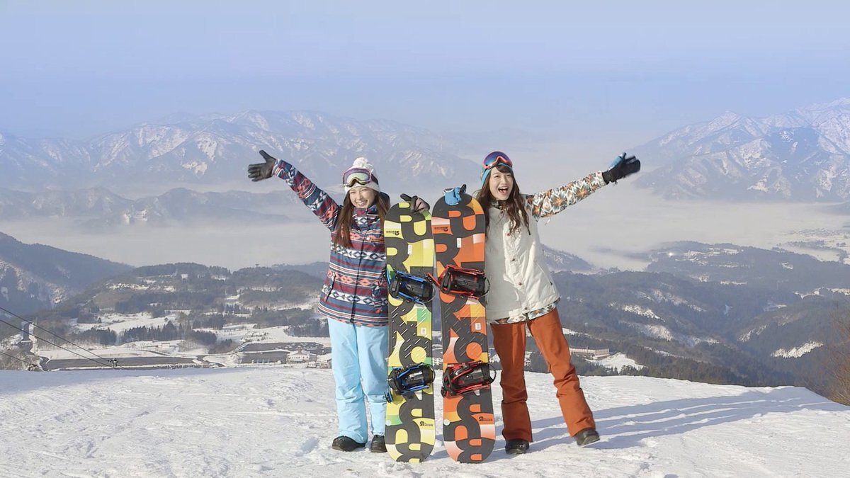 「スキージャム勝山」は、最長滑走距離5,800メートル、全14コースを完備。西日本でも有数の規模を誇るスキー場です。ゲレンデは、初級コースが多い「バラエティーサイト」、スノーボーダーに人気の「ファンタジーサイト」、山頂から絶景が楽しめる「イリュージョンサイト」の3つのエリアに分かれています。