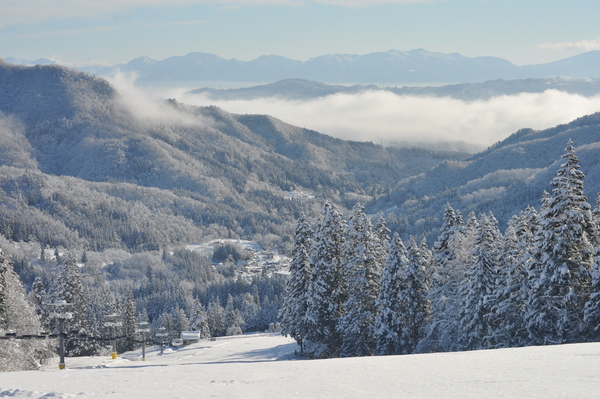 日本百名山のひとつで朝日連峰の主峰となる大朝日岳の麓に広がるスキー場、Asahi自然観スノーパーク。雪は天然雪100%、朝日連峰を背にしていることで豊富な降雪量があり、モフモフのパウダースノーを体験できる雪の楽園です。ロケーションも抜群で白銀に染まる木々や自然豊かな周囲の山々をはじめ、蔵王連峰まで見渡すことができますので、景色も楽しむことが出来ます。初めてゲレンデを利用する方からファミリーや上級者まで楽しめるように、5つのゲレンデと4基のペアリフトでレイアウト。快適な1枚バーンから起伏に富んだコース、そして人気の深雪パウダースノーエリアや最大斜度34度の急斜面もあり、豊かなバリエーションを備えています。気候が比較的安定していることも特徴で、強い風は少なく、日中の気温は暖かく感じる日も多いため、お子様や初心者の方も快適にご利用いただけます。