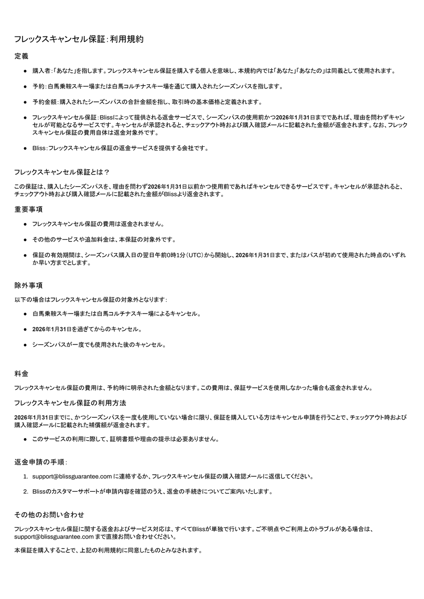 ご不明な点がある場合は Blissカスタマーサポート(support@blissguarantee.com)までご連絡ください。