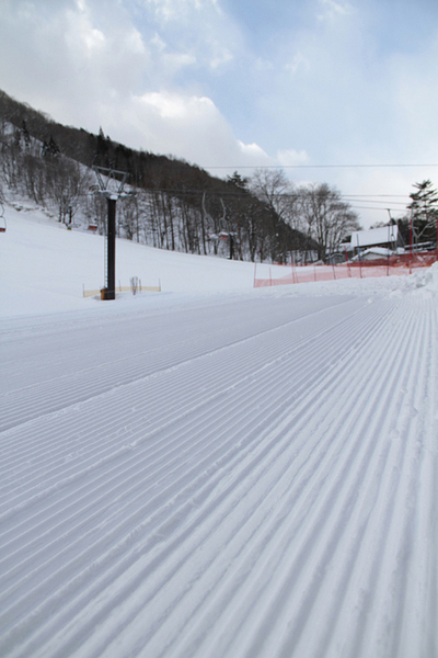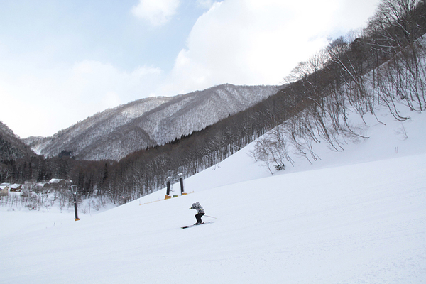 尾瀬檜枝岐温泉スキー場は、左右2コースに分かれた上級者向けのゲレンデとなっており、下から向かって左側の斜面は斜度30度のディープパウダーのコース。向かって右側のコース半面は、常時アルペンスキーのゲートトレーニングバーンとして利用されています。