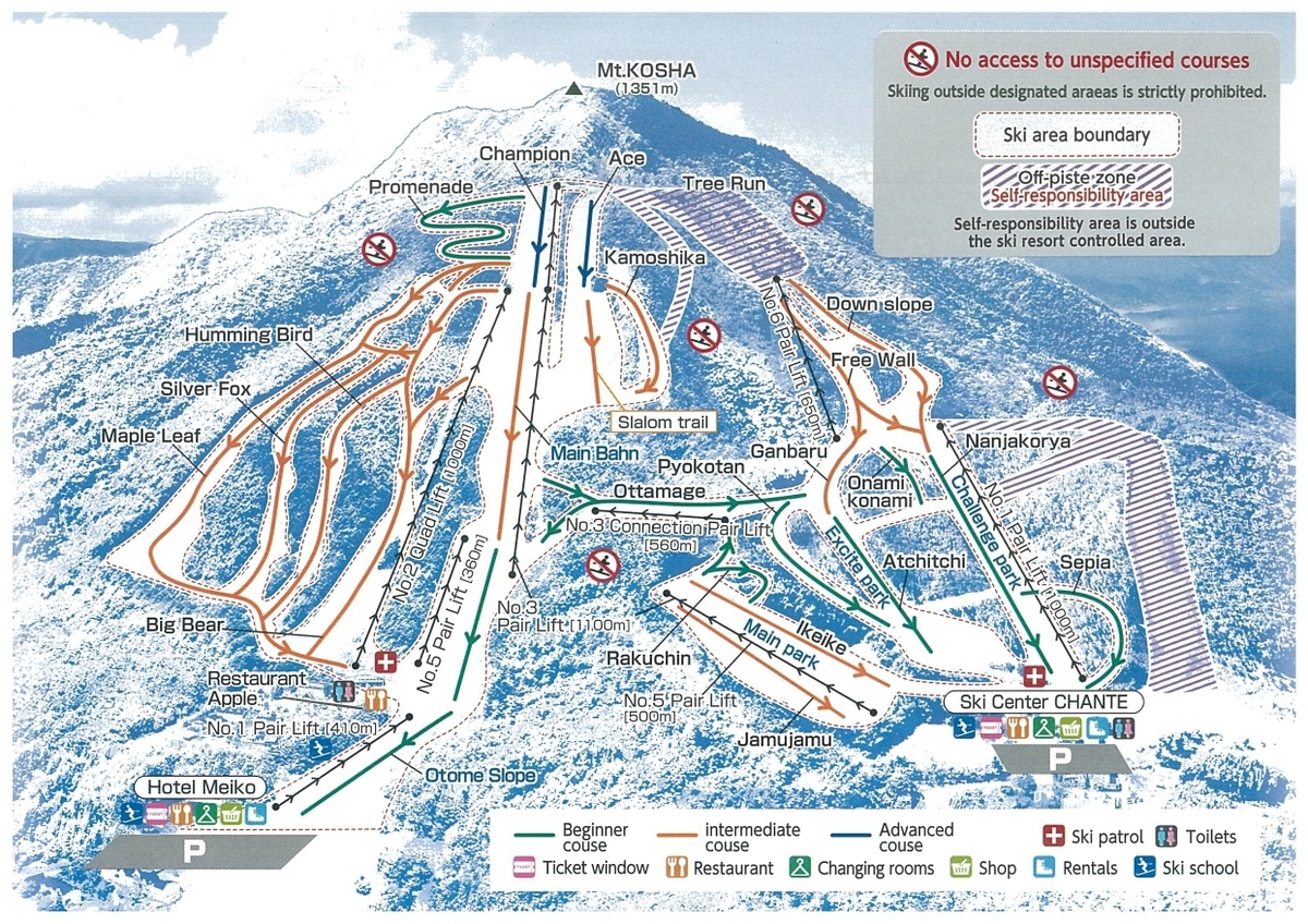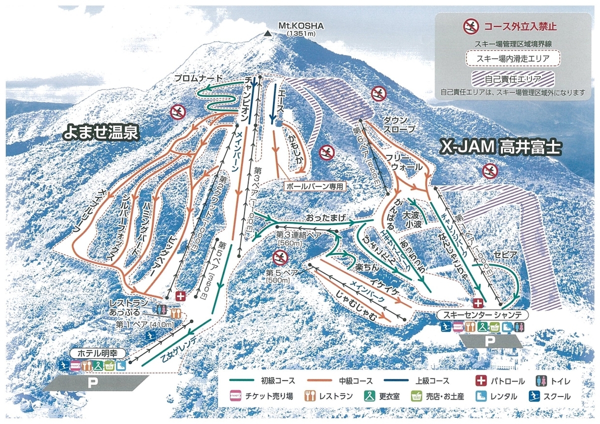 初級者から上級者までのパークがあり、よませ温泉スキー場との共通リフト券になっているので、2カ所のスキー場が滑走可能.。駐車場から近く、スキーセンターを中心に滑走が広がっている。スノードライブやスノーモトもアクティビティで利用可能!