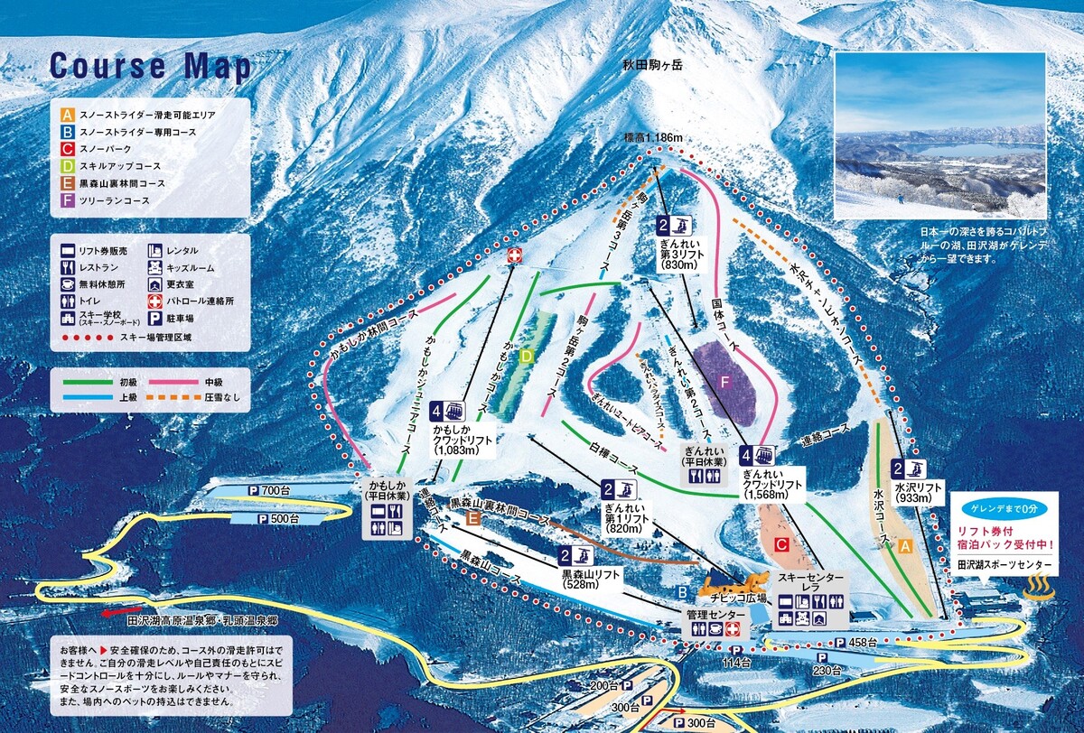 コブや深雪そして幅広の中・緩斜面などがあり、東北を代表するスキー場。ゲレンデからは田沢湖を望む景色の素晴らしさも評判です。子供達に大人気のスノーランドやスキルアップに最適なスノーパークもおすすめです。スキー場周辺には全国に名高い乳頭温泉郷等の天然温泉も日帰り入浴で堪能できます。