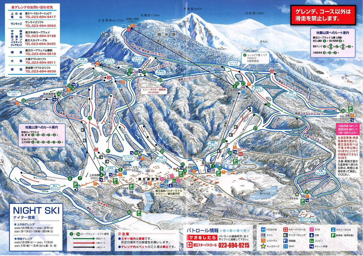 ここは、様々なレベルのスキーヤーに対応できる多様なスキーコースがあり、独特の樹氷の景色も楽しめます。山頂の食事も種類が豊富で美味しいです。